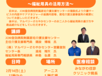 本会とアーニス・医療と親しむ会(問合せ先:みながわ往診クリニック)では、毎月医療相談・講習会を開催しており、次回はチラシのとおり開催します。 参加費無料、申し込み不要ですので、ぜひご参加ください。