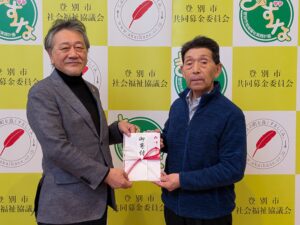 登別歌友会様より寄付をいただきました 2026 4/08 TOPIC 3月23日、登別歌友会様より、社会福祉のためにご寄付をいただきました。 誠にありがとうございました。 TOPIC よかったらシェアしてね! URLをコピーしました! URLをコピーしました! ダンスサークル「コスモス」様より寄付をいただきました 関連記事 ダンスサークル「コスモス」様より寄付をいただきました 2026年04月08日 みどり会にお邪魔しました 2026年04月08日 ボランティアパネル展inアーニスの展示期間延長のお知らせ 2026年04月07日 鉄南いきいきサロンにお邪魔しました 2026年04月06日 令和8年度修学旅行お小遣い助成事業が始まります 2026年04月02日 4月2日は世界自閉症啓発デーです 2026年03月30日 「お茶の間会議in登別中学校」を実施しました 2026年03月25日 室蘭民報社中部支社様より寄付をいただきました 2026年03月19日