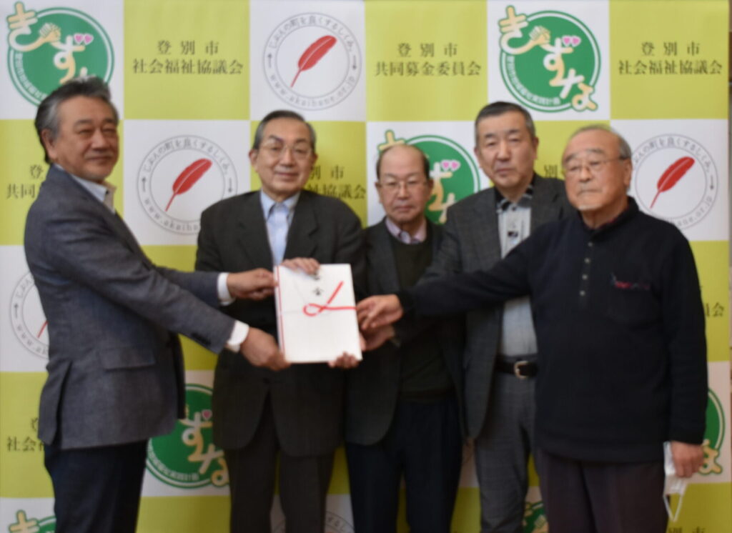 10月5日(土)、鷲別コミュニティセンターにおいて第43回四地区(富岸、新生、鷲別、美園・若草地区)合同チャリティー市民演芸会を開催され、本演芸会実行委員会より益金として146,570円が登別市社会福祉協議会へ贈呈されました。 -