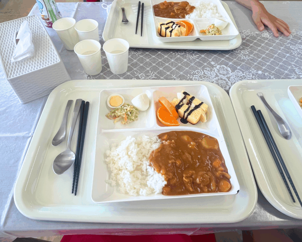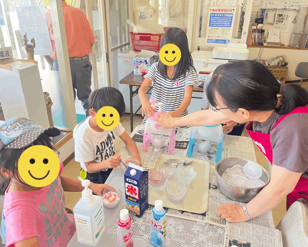 この日は、カレーライスなどが振舞われて、食事の後にはかき氷もしました。