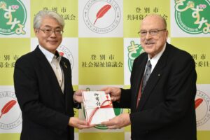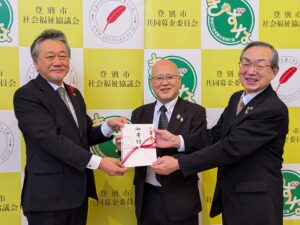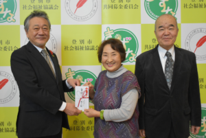 ボランティア焼いも屋台いもにゃん様より寄付をいただきました 2026 2/05 寄付 1月5日、ボランティア焼いも屋台いもにゃん様より、刈田神社チャリティー焼きいもの売り上げの一部を社会福祉のためにご寄付をいただきました。 誠にありがとうございました。 寄付 よかったらシェアしてね! URLをコピーしました! URLをコピーしました! 宗教法人登別中央福音教会様より寄付をいただきました 富浜町内会婦人部様より寄付をいただきました 関連記事 2026年カレンダーリサイクル市を開催しました 2026年02月26日 登別ガス協同組合様より赤い羽根共同募金へ寄付をいただきました 2026年02月20日 わしこうD愛好会様より寄付をいただきました 2026年02月05日 登別カトリック聖心幼稚園様より寄付をいただきました 2026年02月05日 北海道登別明日中等教育学校 6回生 3名より寄付をいただきました 2026年02月05日 東條 馨様より寄付をいただきました 2026年02月05日 コンパニア・デ・マンドリーナ様より寄付をいただきました 2026年02月05日 富浜町内会婦人部様より寄付をいただきました 2026年02月05日