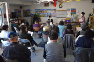 3月2日(火)、登別小学校4年生16名を対象に出前福祉講座を開催しました。この日は視力障がい当事者で登別視力障害者協会の髙橋良夫さんと松本優子さん、ボランティアの榎本さんと西田さんにご協力いただきました。