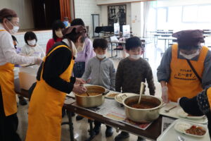 ボランティア局の生徒を中心にその友達も手伝って作成し、12月21日、松ぼっくりで作ったクリスマスツリーや、幌別中学校の季節行事の写真を掲載した壁掛けカレンダー、花型のメッセージカードを職員さんへお渡ししました。そして後日、施設の利用者さんからメッセージをしたためた色紙と写真がお返しとして届き、プレゼントのやり取りを通して交流することができました。利用者さんも喜んでくれた様子で、生徒達からは「みんなで作る時間も楽しく、喜んでもらえてよかった」との感想が聞かれました。