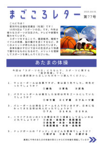 まごころレター第78号(10月15日) 2024 1/26 まごころレター3 20231015-02 magokoroletter-78 ダウンロードはこちらから まごころレター3 よかったらシェアしてね! URLをコピーしました! URLをコピーしました! まごころレター第77号(10月1日発行) まごころレター第79号(11月1日) 関連記事 まごころレター111号(3月1日) 2026年03月02日 社協だより171号(3月1日) 2026年03月02日 社協だより170号(11月1日) 2026年02月26日 のぼりべつ民児協だより第4号(2026年2月) 2026年02月26日 のぼりべつ民児協だより第3号(2025年2月) 2026年02月26日 まごころレター110号(2月1日) 2026年02月17日 まごころレター109号(1月1日) 2026年01月22日 まごころレター108号(12月1日) 2025年12月15日