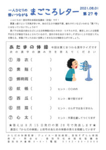 Kizuna&第8号(2021年8月) 2021 7/30 Warning: Undefined array key 0 in /home/xs115005/kizuna-shakyo.jp/public_html/wp-content/themes/swell/classes/Utility/Get.php on line 805 kizuna& Kizuna&第8号(2021年8月発行):ダウンロード Kizuna&8号 kizuna& よかったらシェアしてね! URLをコピーしました! URLをコピーしました! まごころレター第26号(07月15日) まごころレター第27号(08月01日) 関連記事 まごころレター111号(3月1日) 2026年03月02日 社協だより171号(3月1日) 2026年03月02日 社協だより170号(11月1日) 2026年02月26日 のぼりべつ民児協だより第4号(2026年2月) 2026年02月26日 のぼりべつ民児協だより第3号(2025年2月) 2026年02月26日 まごころレター110号(2月1日) 2026年02月17日 まごころレター109号(1月1日) 2026年01月22日 まごころレター108号(12月1日) 2025年12月15日